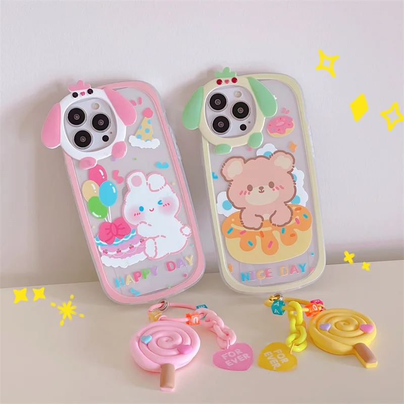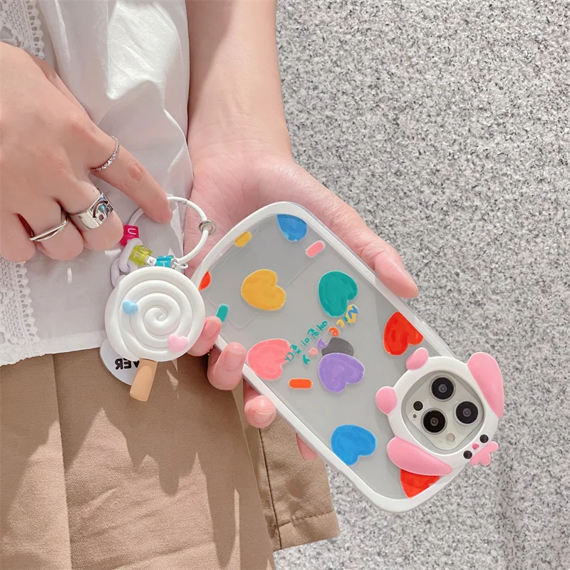 - كارتون فريد مضحك الكلب عدسة لينة قضية الهاتف آيفون 12 11 13 برو ماكس Xs XR جميل القلب كاندي قلادة واضح الوفير غطاء