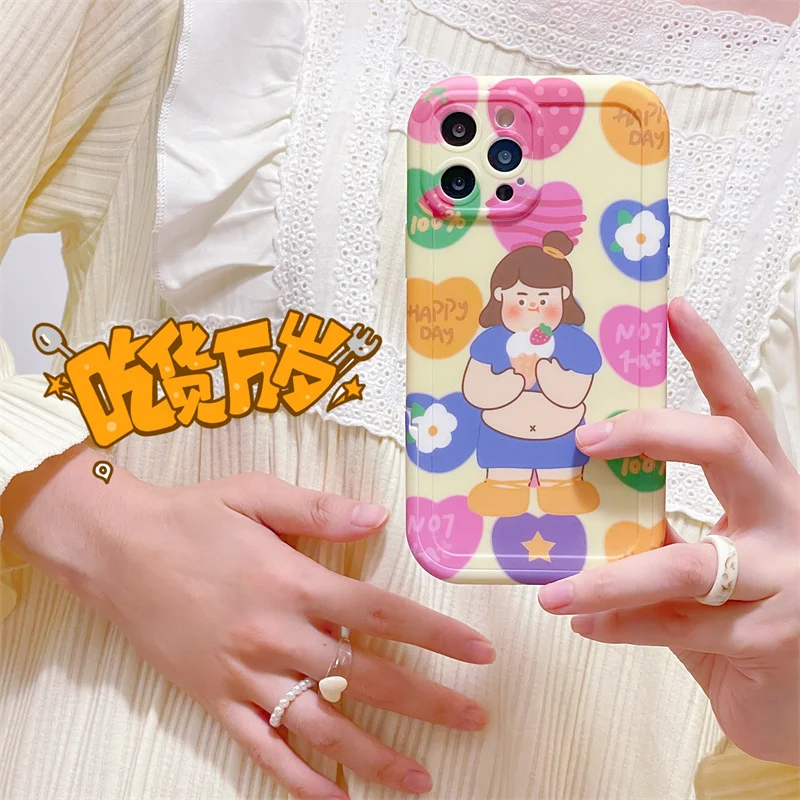 - كارتون فريد الكتابة على الجدران مضحك الدهون فتاة نمط لينة قضية الهاتف آيفون 12 11 13 برو ماكس Xs XR المخفية إطار قوس غطاء كابا