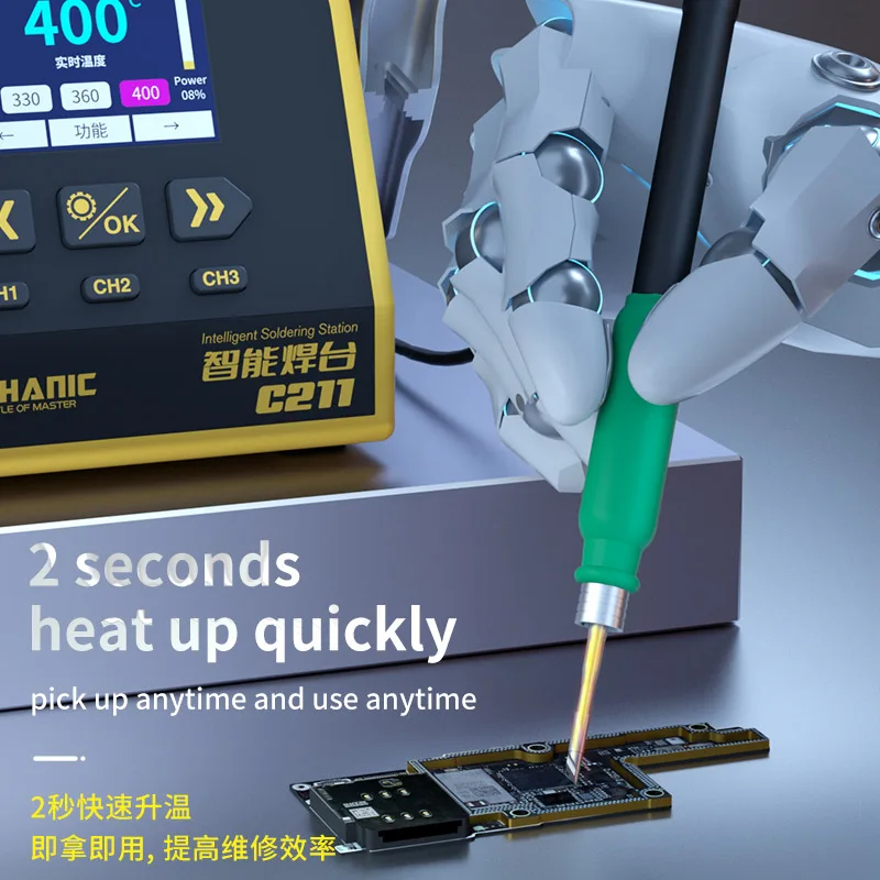 1. ميكانيكي C211 محطة لحام ذكي 130 واط C210 115 اليد 2 ثانية تسخين سريع حتى السيارات النوم الهاتف إصلاح أداة لحام Product Id: 1005004001215666 |