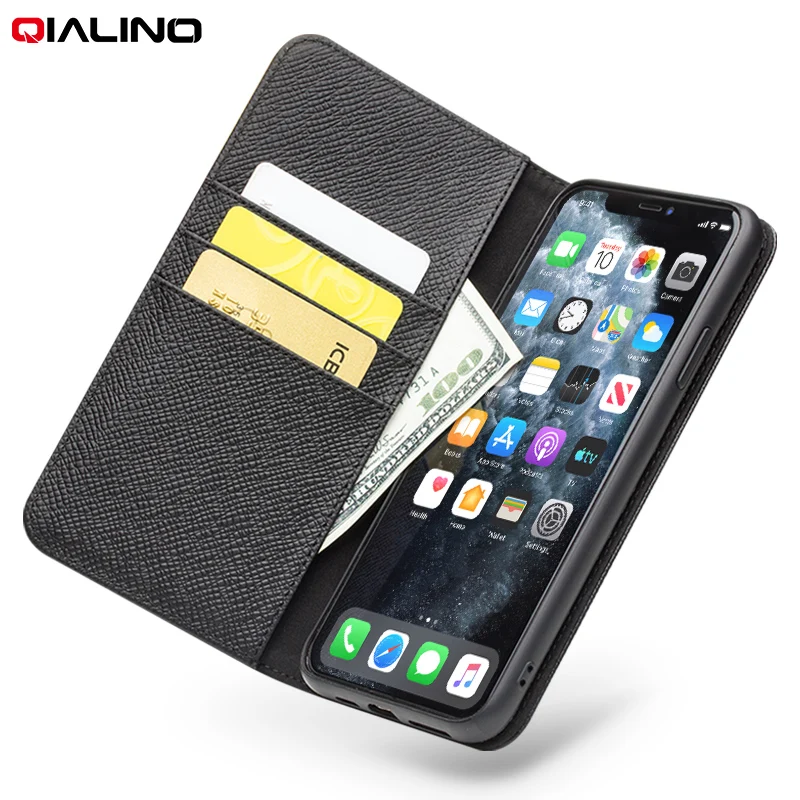 - QIALINO الفاخرة جلد طبيعي حالة الهاتف ل فون 11/11 برو بطاقة فتحات المغناطيسي سيارة عقد فليب غطاء ل iPhone11 برو ماكس