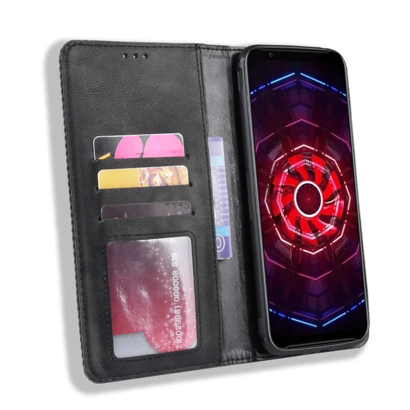 - جراب جلد مغناطيسي لهاتف ZTE Nubia Red Magic 3 3S ، حافظة كتب ، عتيق ، نحيف ، حافظة هاتف ، حامل بطاقات ، غطاء ناعم