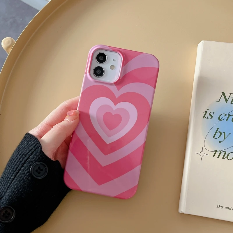 - Ins Cute Rose Red Gradient Love Heart Korean Phone Case For iPhone 13 12 11 Pro Max Xr X Xs Max Hard PC Back Cover Coque Capa
