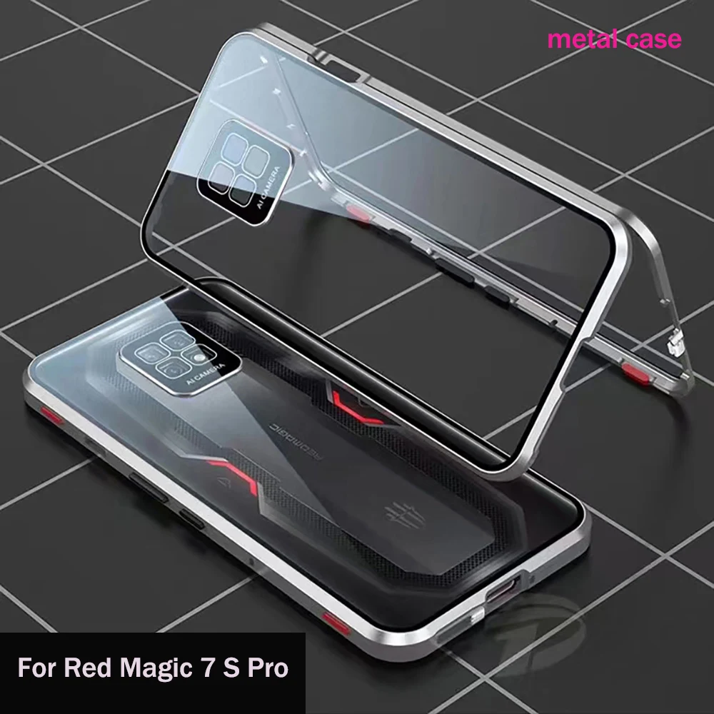 - اللون الفضي ل النوبة الأحمر ماجيك 7S برو إطار معدني مزدوج الوجهين الزجاج المقسى غطاء ل RedMagic 7S برو NX709J الحالات الهاتف