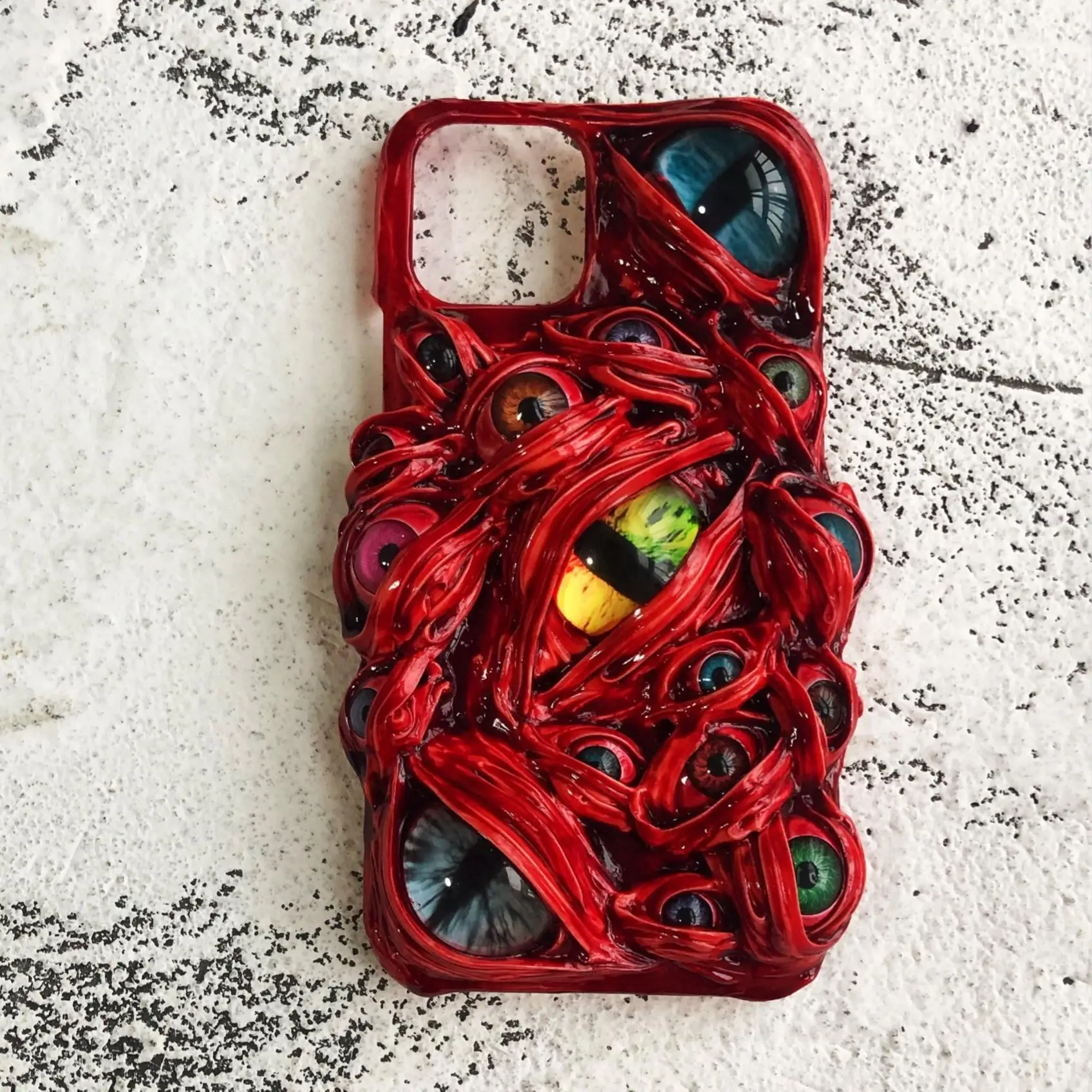 - IPhone7plus حقيبة هاتف محمول Xsmax نظارة عادية 6/11promax/7/8P/xr الرعب مقل العين تلتهم الظلام شخصية نهاية الحياة