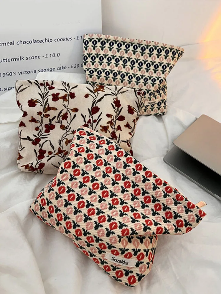 - Toiletrys المنظم حقائب التجميل فتاة في الهواء الطلق السفر حقيبة مستحضرات تجميل الأزهار امرأة شخصية سستة مخلب الهاتف محفظة الجمال حالات