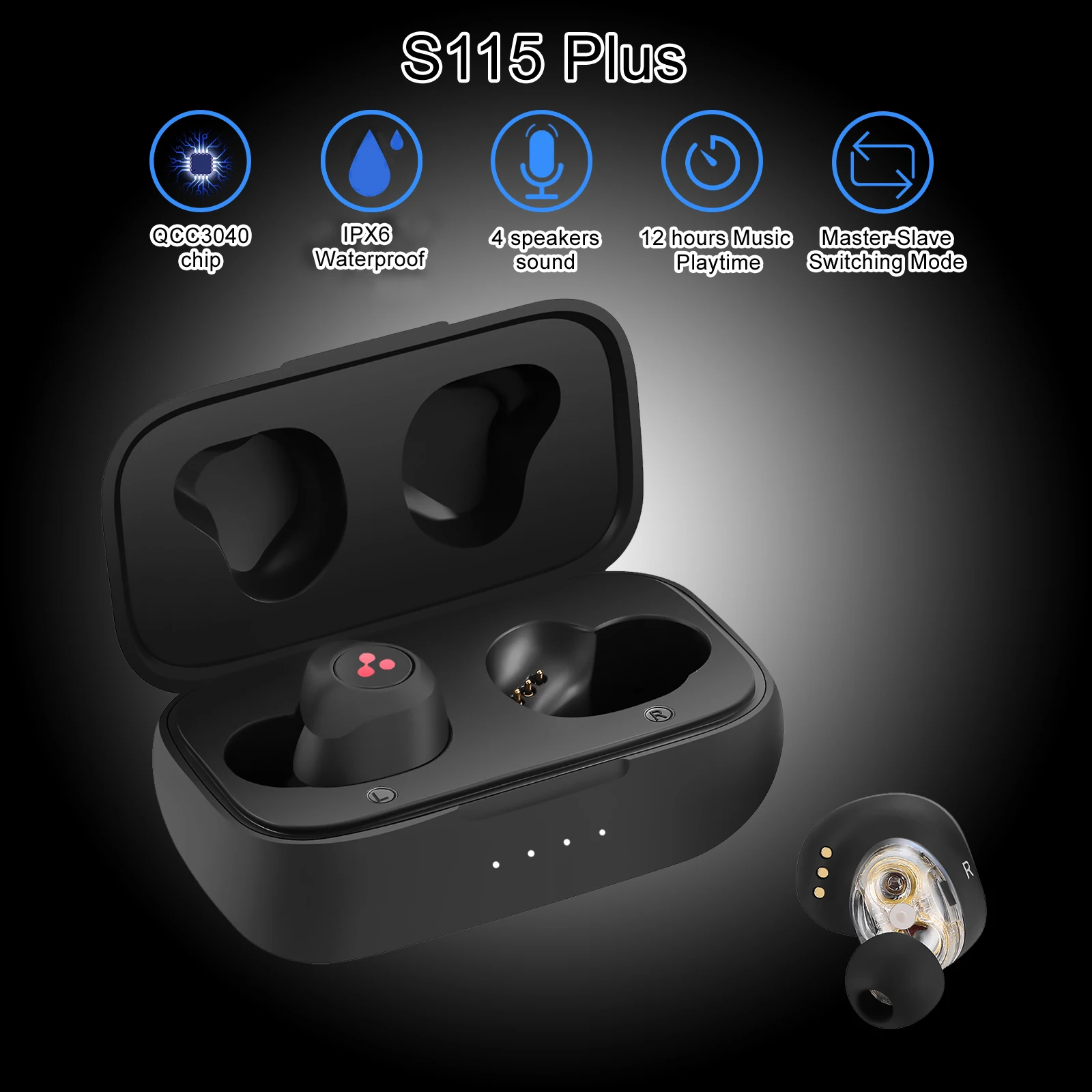 - 2022 مقطع S115 زائد قوي باس TWS سماعات رأس لاسلكية للحد من الضوضاء للموسيقى QCC3040 رقاقة من مقطع S115 زائد 12 ساعة