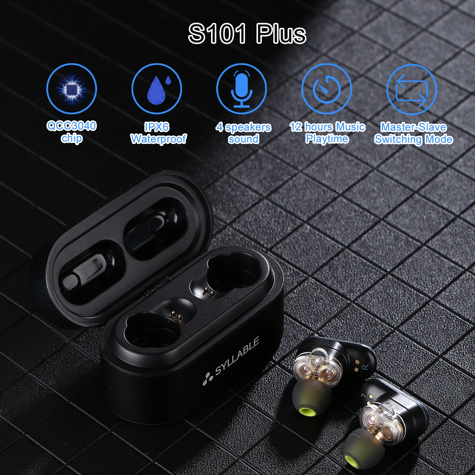 - 2022 مقطع S101 زائد قوي باس TWS سماعات رأس لاسلكية للحد من الضوضاء للموسيقى QCC3040 رقاقة من مقطع S101 زائد 12 ساعة