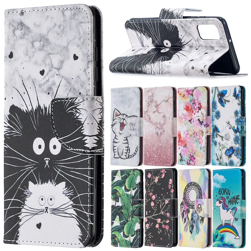 - Flip Case for Funda Samsung Galaxy A03S A13 A52S A32 A22 A12 A72 A02S 5G Cases Cute Cat Flower Leather Wallet Phone Cover Capa