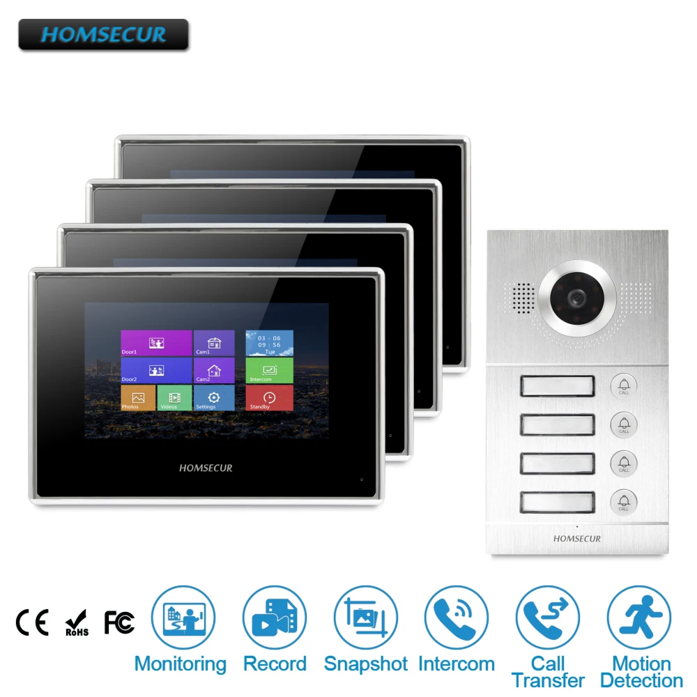 - HOMSECUR 7 “الفيديو والصوت جرس باب ذكي مع رصد في الهواء الطلق ل 4 شقة BC121-4S + BM718-B