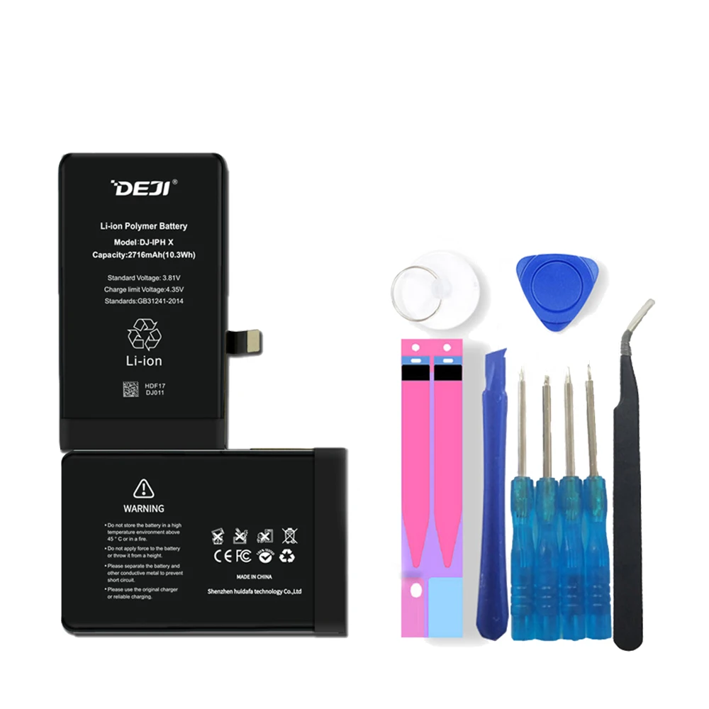 - بطاريات DEJI لآي فون X 2716mah القدرة الحقيقية للاستبدال طقم أدوات مجاني ملصق إصلاح الهاتف بطارية ليثيوم أيون الأصلية