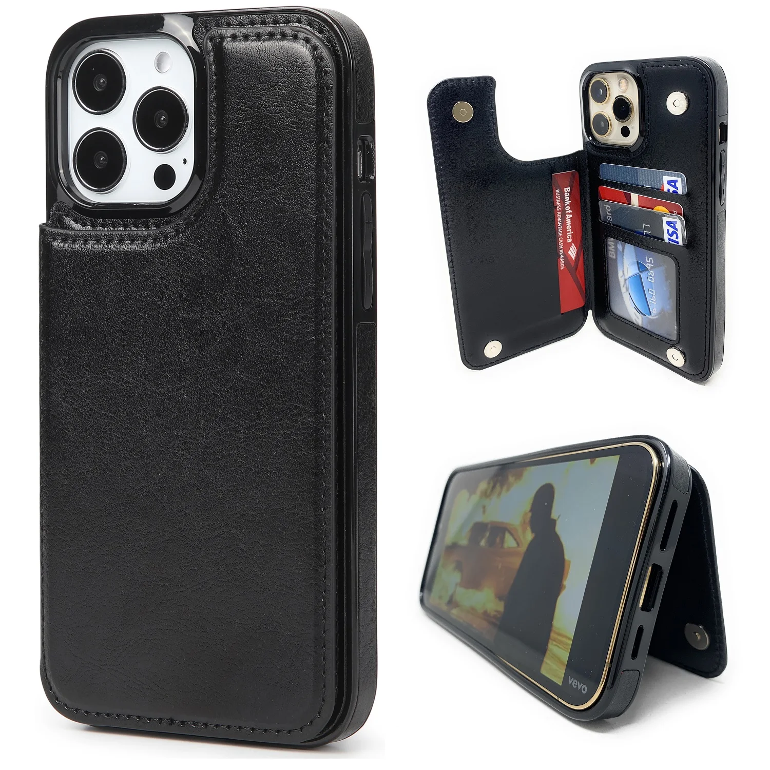 - العصرية للصدمات قضية الهاتف الخليوي المحفظة آيفون 13 برو ماكس مع فتحات بطاقة حامل المرأة المحفظة الفاخرة المغناطيسي عملة جيب