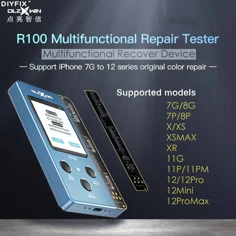 - جهاز استعادة متعدد الوظائف R100 لجهاز آيفون 7G-12 برو ماكس شاشة LCD اللون الأصلي أداة اختبار إصلاح النغمة الحقيقية