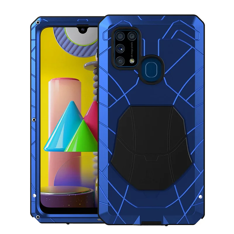 - جراب هاتف Samsung Galaxy M31 ، جراب هاتف من الألومنيوم الصلب ، زجاج مقوى ، واقي شاشة ، شديد التحمل ، M31