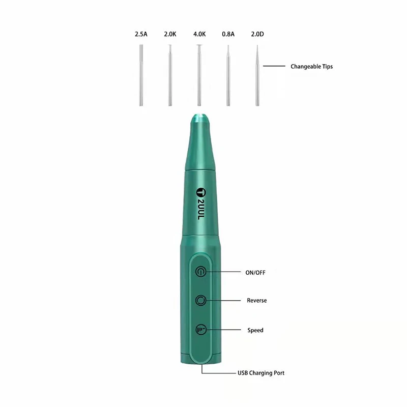 - 2UUL قابلة للشحن تلميع الحفر القلم لإصلاح الهاتف المحمول المهنية أداة تجليخ مجموعة قابل للتعديل إلى الأمام والعكس