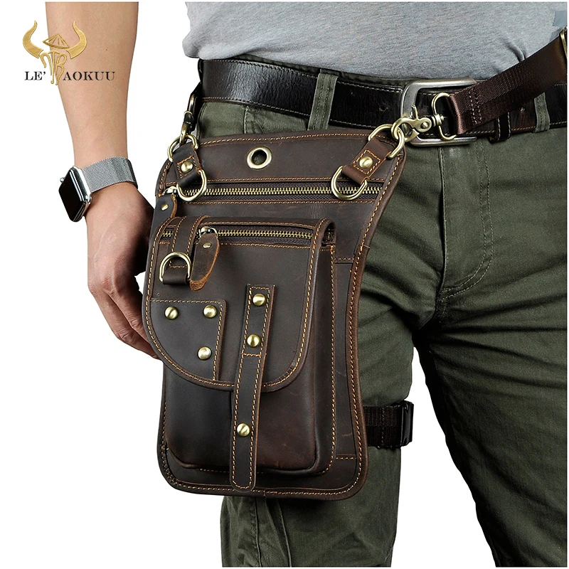 - جلد طبيعي متعدد الوظائف الرجال واحد الكتف Crossbody حقيبة ساعي هوك الخصر حزمة الهاتف حافظة سجائر حقيبة متدلية من الوسط على الساق 2141