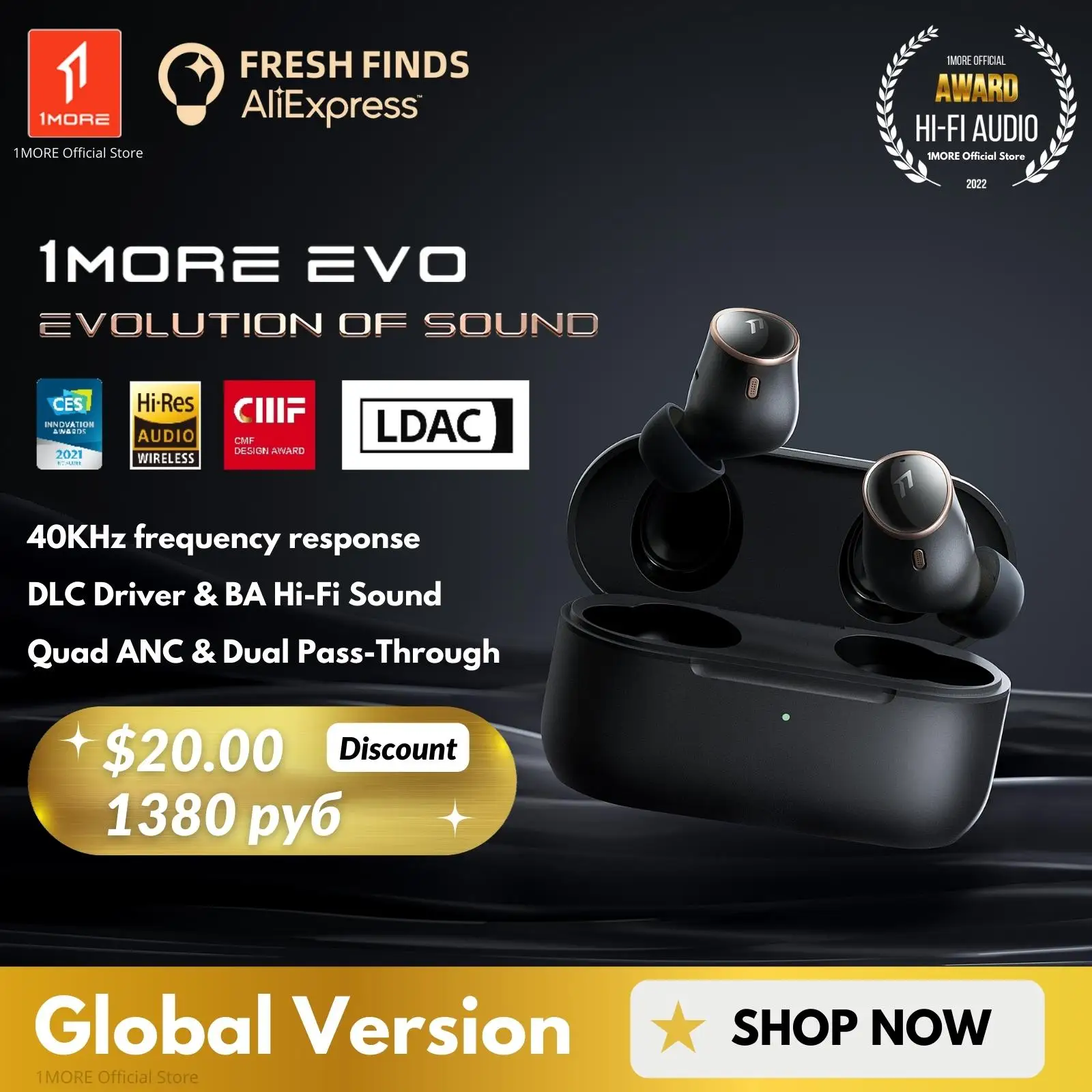 11. 1MORE EVO Hi Res True Wireless Earbuds Audiophile LDAC Bluetooth 5.2 Headphones 42dB ANC Connect 2 Devices سماعات Product Id: 1005004094636281 |