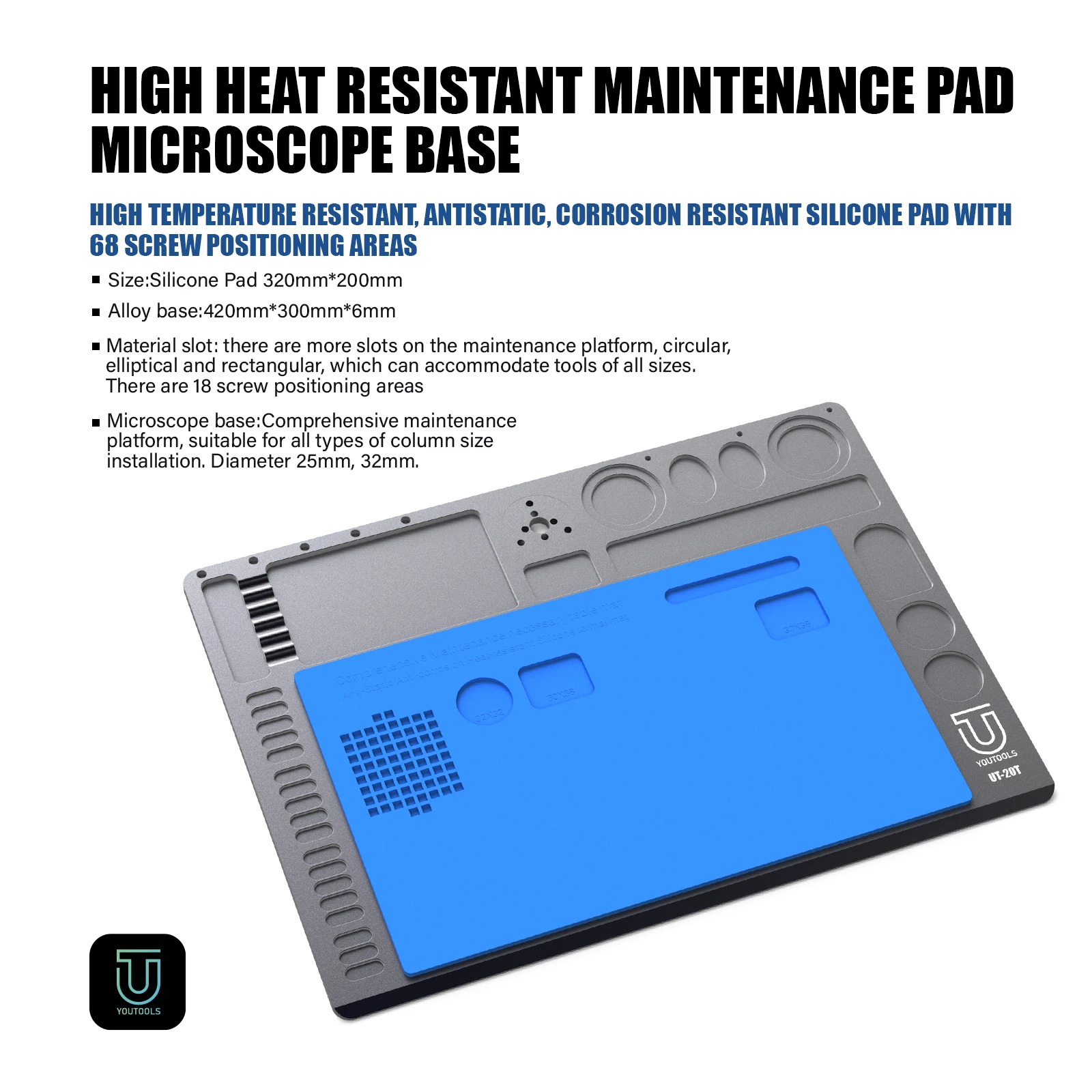 - UT 20T مجهر ثلاثي العينيات/مجهر ذو قاعدة كبيرة من السيليكون المقاوم للحرارة منصة صيانة الهاتف المحمول