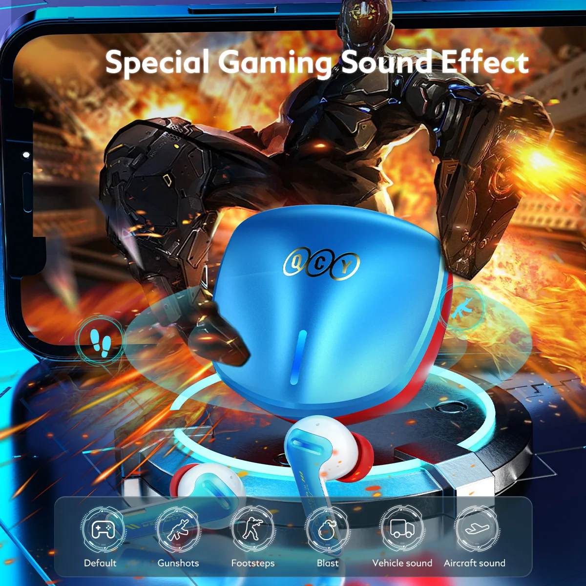 - QCY G1 TWS سماعات بلوتوث للألعاب 5.2 45ms منخفضة الكمون سماعة رأس لاسلكية مع 4 Mics + ENC سماعات ستيريو HiFi للألعاب/الموسيقى