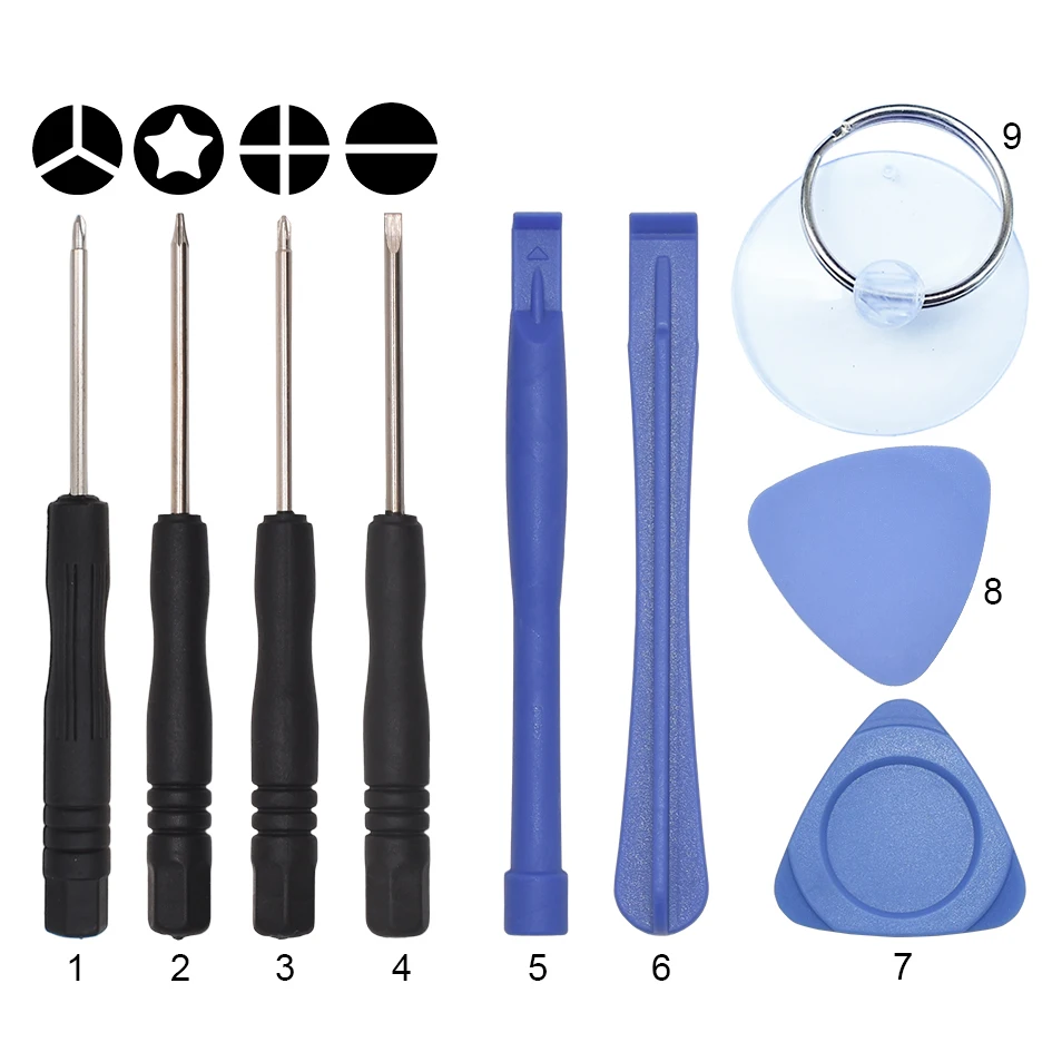 1. 100 مجموعة حقيبة 9 قطعة أدوات إصلاح مزيج مجموعة مفك حدق بار الثلاثي حدق مصاصة إصلاح ل فون سامسونج Product Id: 4001360092511 |