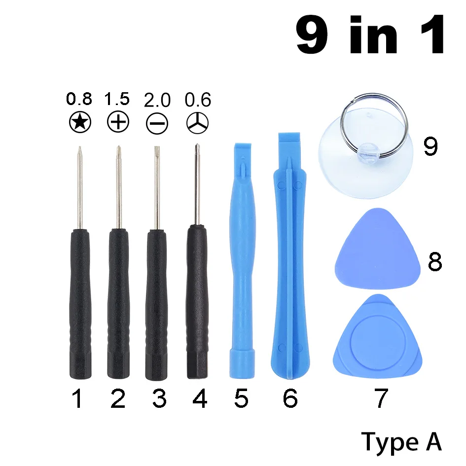 7. مع 0.6 Y 9 في 1 مفك مجموعة القياسية الهاتف المحمول افتتاح أدوات عدة ل فون 7 8 X إصلاح أداة 300 مجموعة وحدة Product Id: 33019683533 |