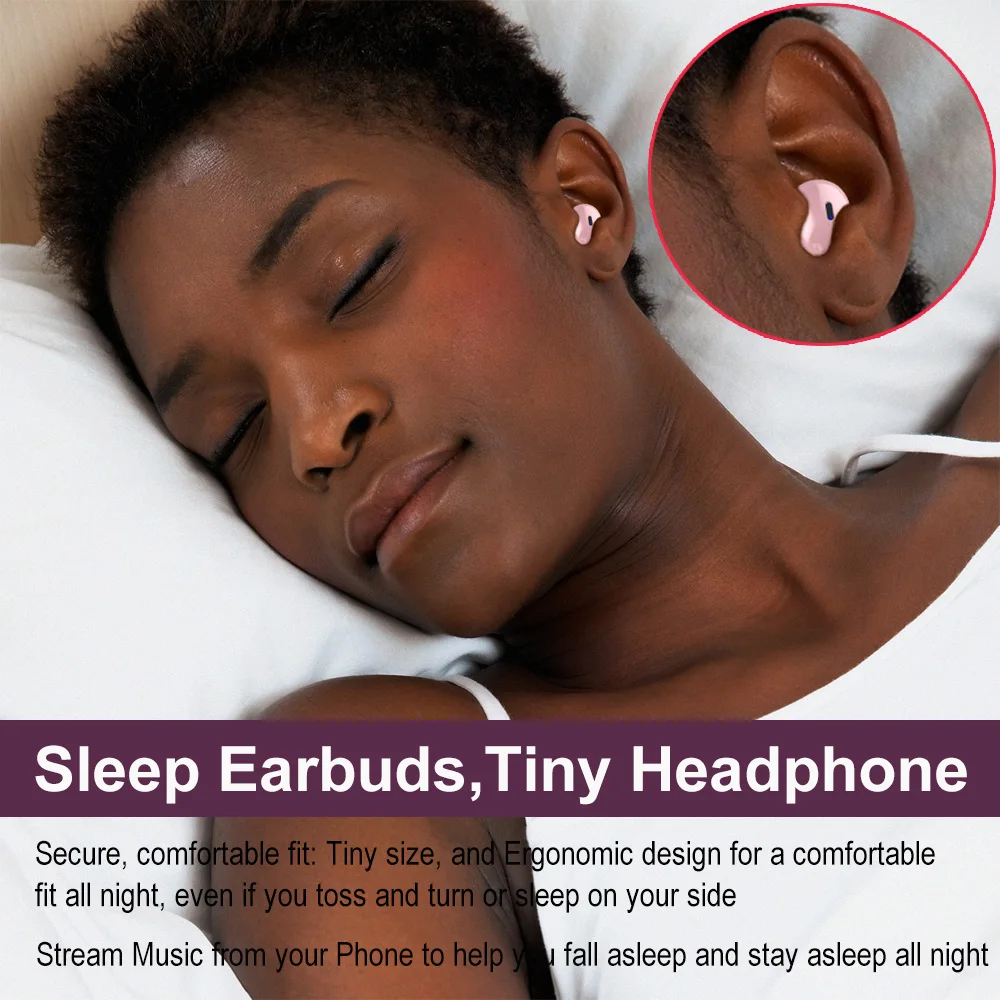 سماعات النوم وسماعات الأذن الصغيرة غير مرئية مع حجم نانو يمكن ارتداء إلى الجانب النوم تيار الموسيقى من آيفون أو أندرويد الهاتف. الأفضل 1 سماعات أذن لاسلكية يمكنك النوم فيها في 2022 والمقارنة.