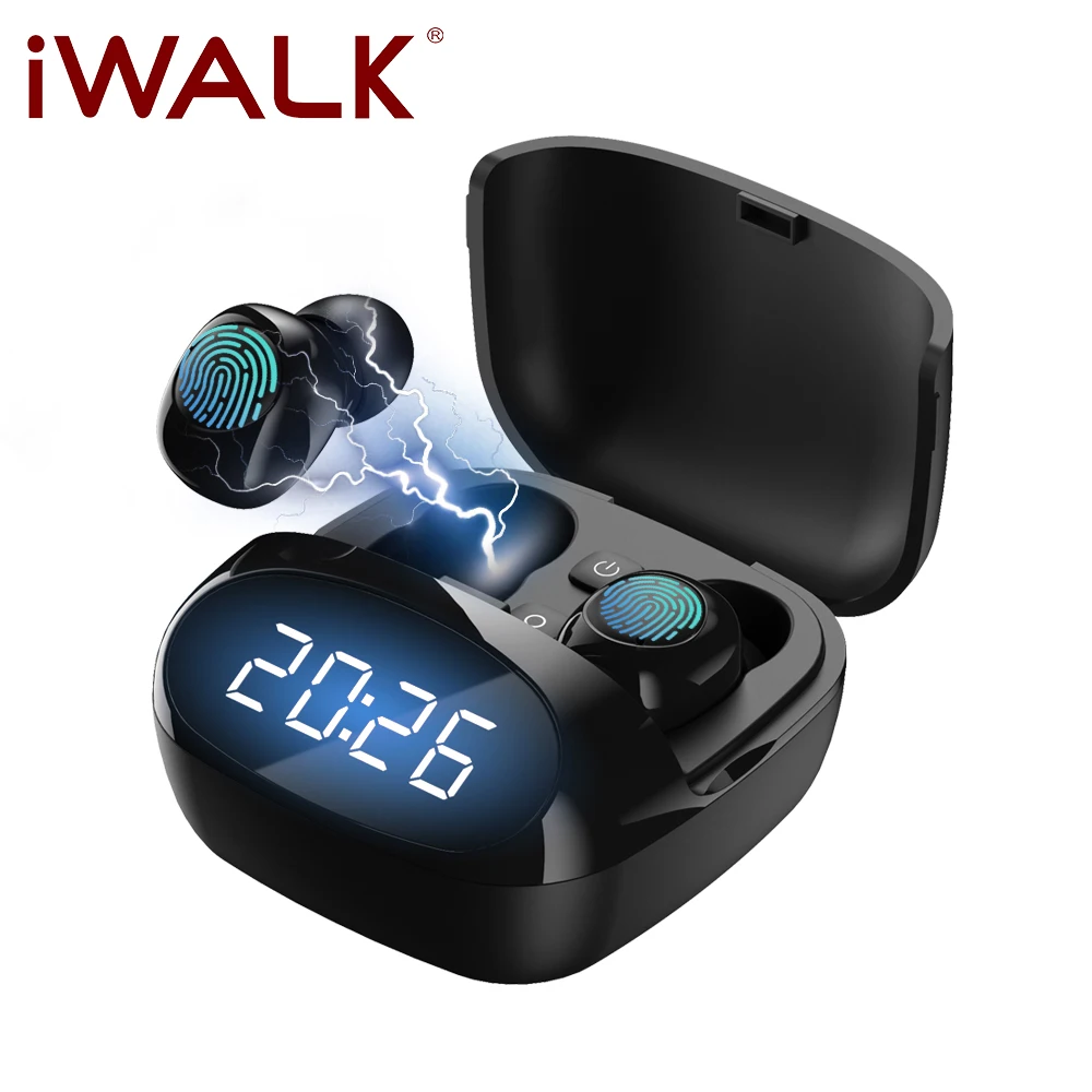 - IWALK Mini TWS بلوتوث V5.0 ساعة ليد سماعات لاسلكية 9D Hifi سماعة أذن رياضية IPX4 مقاوم للماء سماعة أذن ميكروفون