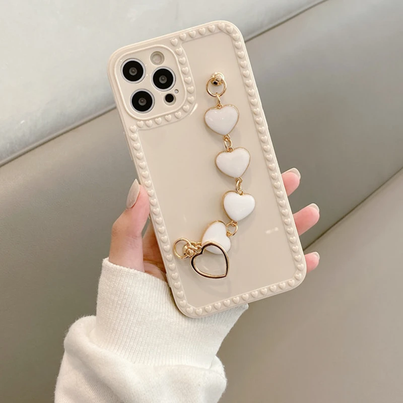 - كوريا ثلاثية الأبعاد الحب القلب المعادن سوار المعصم سلسلة لينة قضية الهاتف آيفون 12 13 برو ماكس ميني 11 XR X XS 7 8 Plus 6 SE 2020 غطاء
